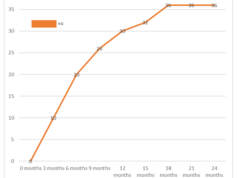 So on the labrador puppy growth chart at around three months .